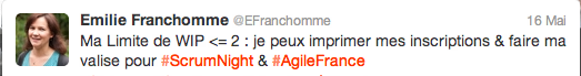 Des retours d’expérience associent Scrum et Kanban : « Scrumban » comme dans Kanbanisation in Progress de Guillaume Anciaux et Thierry Montulé (@siamha). On ne peut que regretter que le format d’une demi-heure n’ait pas permis, une fois posé le contexte, d’approfondir la mise en oeuvre. Sur le même thème : de Scrum vers Kanban, ou comment gérer de manière agile une équipe transverse par Thomas Bonset.
