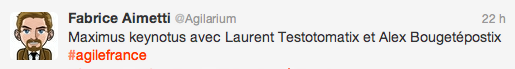 Les leaders montrent également la voie en osant affronter et mettre en jeu leurs contradictions. Saluons avec respect le culot d’Alexandre Boutin (@agilex) et Laurent Bossavit (@morendil) mettant en scène lors de la keynote : le combat des chefs .