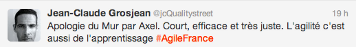 Opportunité de l’échec comme source d’apprentissage représente une préoccupation communeavec la session Echouer avec agilité que nous avons animée avec Dominique de Prémorel à la même heure qu’Axel (!) .