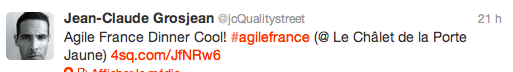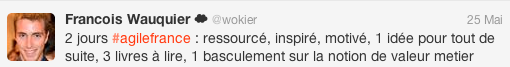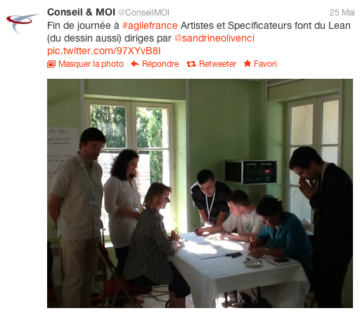 En commençant la rédaction de cette note dans le TGV, je me suis aperçu que je n’avais pas pris de photo lors de ces deux journées : il faisait trop chaud, trop d’activités et heu… oublié ! J’ai donc pioché dans ma revue de tweets (#agilefrance) pour illustrer cet article.