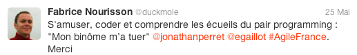 Le tandem se lâche enore plus dans Mon binôme m’a tuer ou comment foirer son pair-programming en dix leçons !