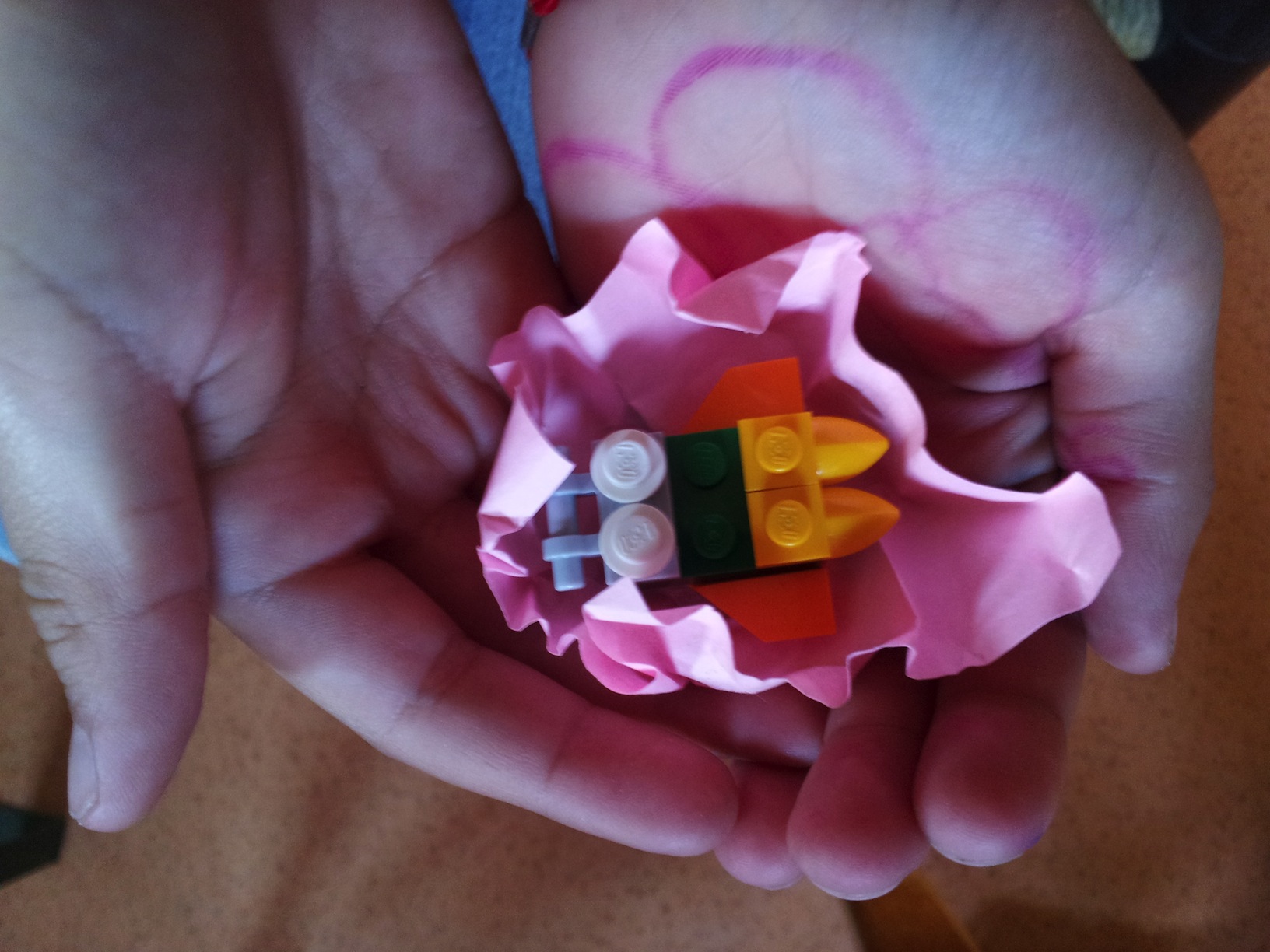A la fin du jeu, chaque équipe était fière de prendre en photo son piou-piou construit en Lego.