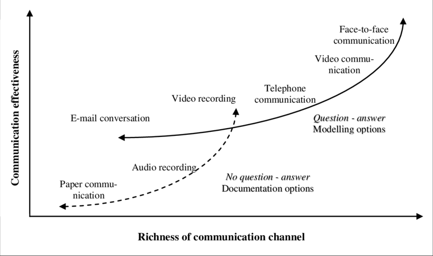 « For instance, @TotherAlistair’s chart of communication channels by effectiveness – http://alistair.cockburn.us/get/2287 «