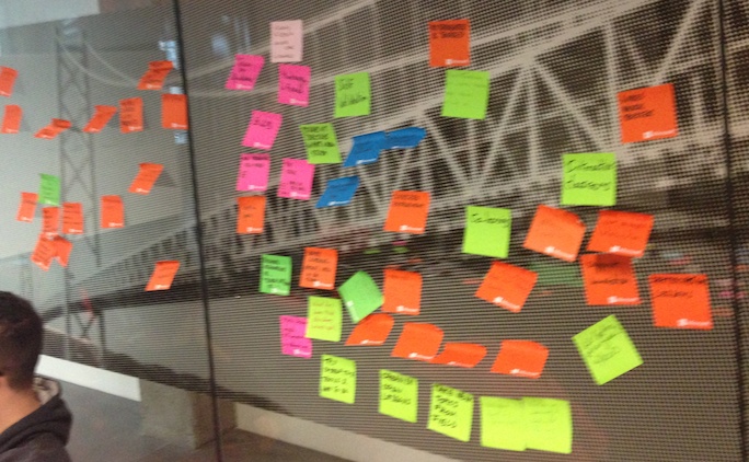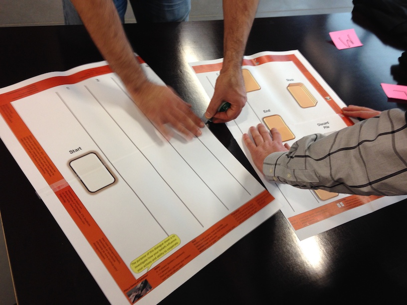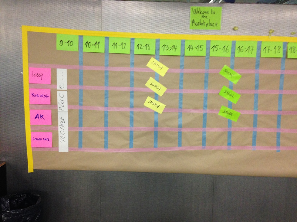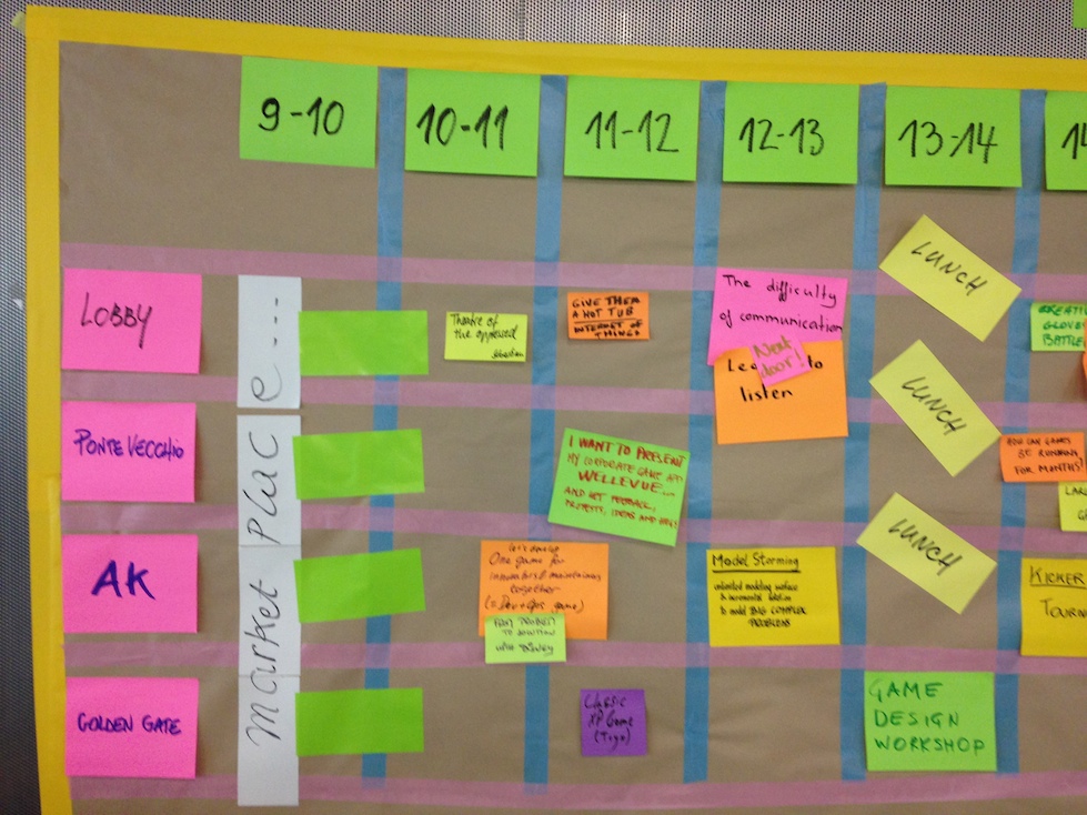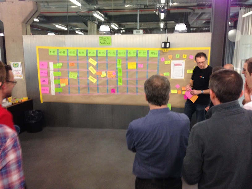 Il me reste un peu de temps pour aller observer la fin d’un atelier, je vais voir Take the Win Win Wave de Pierre E. Neis. La value Stream Mapping d’un coach : pleine de cœurs !