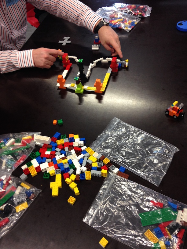 Le premier groupe utilisera des Legos, le second des balles et un club de golf (!) et le troisième de la ficelle ! Je me retrouve dans le groupe héritant des balles.