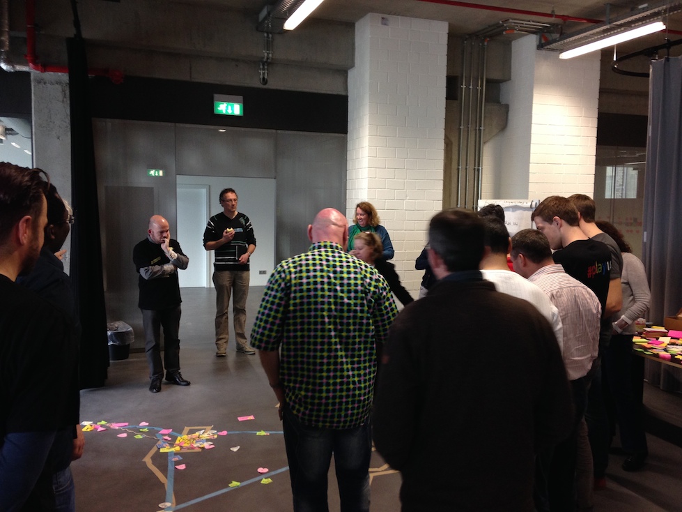 Comme je connais ce jeu pour l’avoir expérimenté lors d’une formation avec Luke Hohmann en personne, j’ai pas mal discuté avec Oswald pour l’aider à améliorer sa préparation. Je suis donc très curieux de voir le résultat !