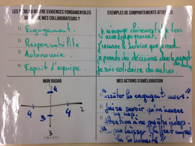 Il est important de proposer régulièrement de faire le point sur l’évolution des actions d’amélioration et d’inviter le leader à revoir son radar et son rapport aux différents comportements.
