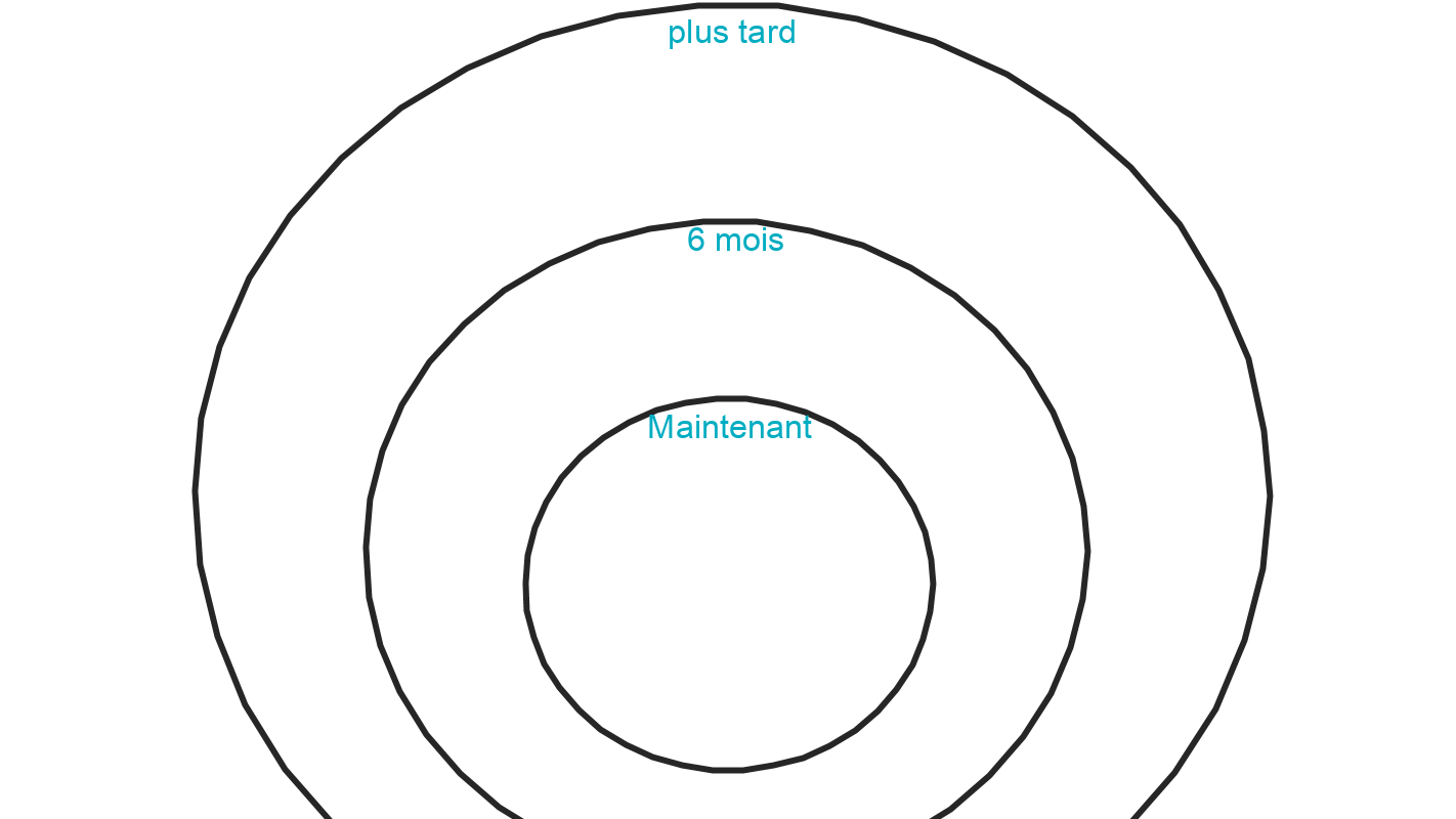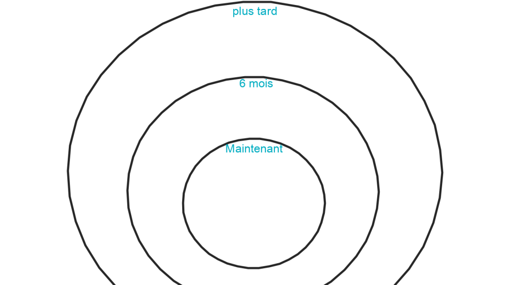 Des canevas comme le « Bullseye » permettent à un collectif de visualiser ses initiatives sur différentes échelles de temps.