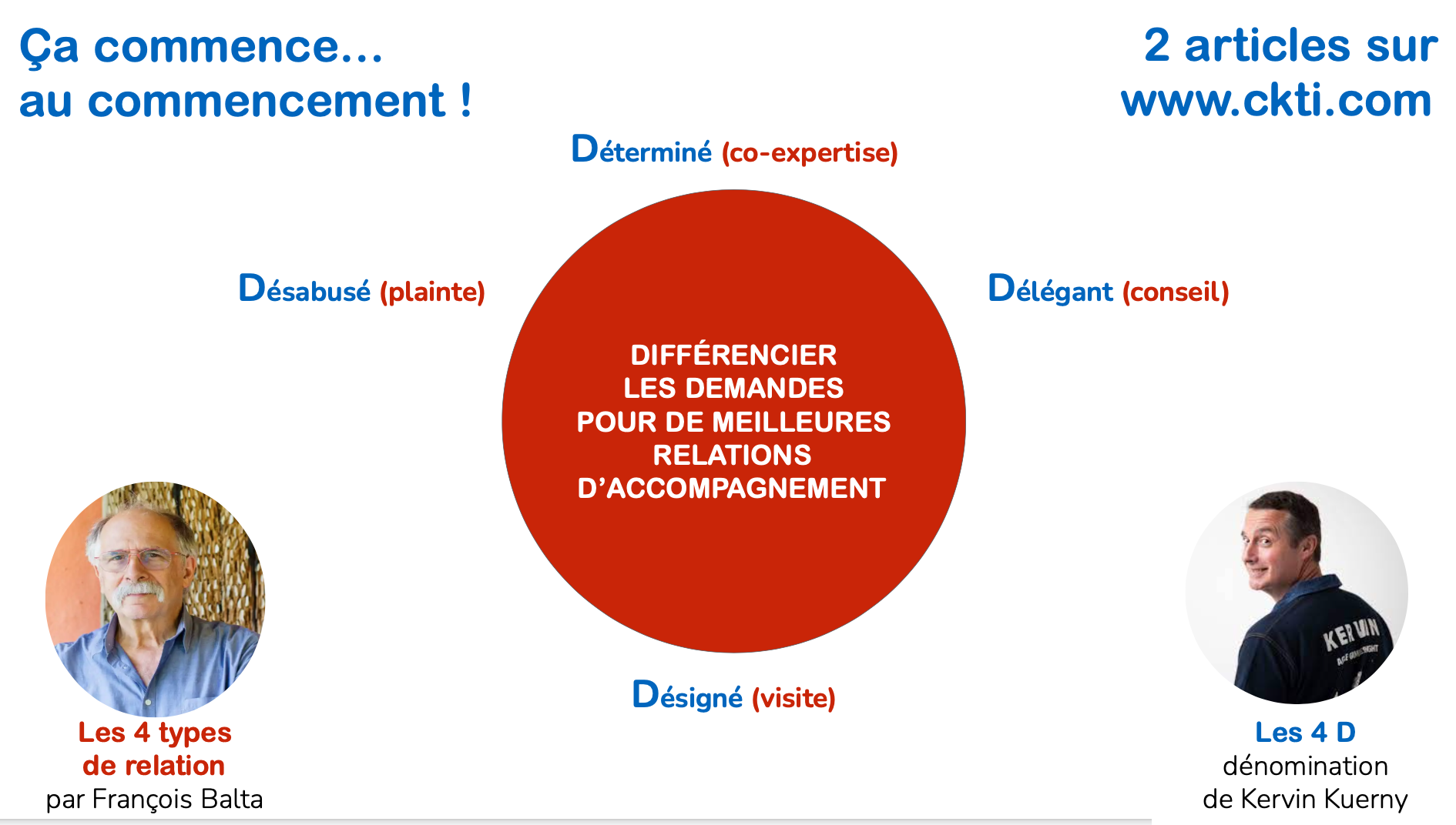 Co-construire le changement, ça commence dès la prise de contact, en prenant en compte le type de demande du client qui conditionnera le type de relation que l’accompagnement développera pour nourrir l’alliance.