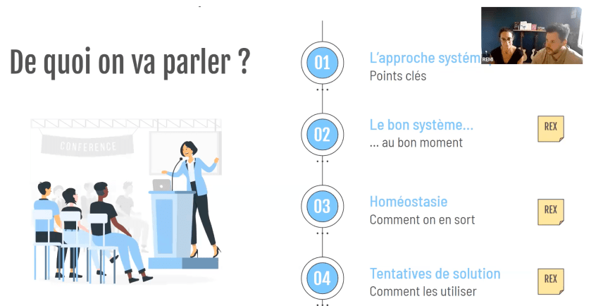 Lors d’une conférence en 4 temps, ponctuée par des moments d’échanges en sous-groupes, le duo a partagé le regard systémique porté sur différentes situations d’accompagnements dans le cadre de transformations dites “Agile”…